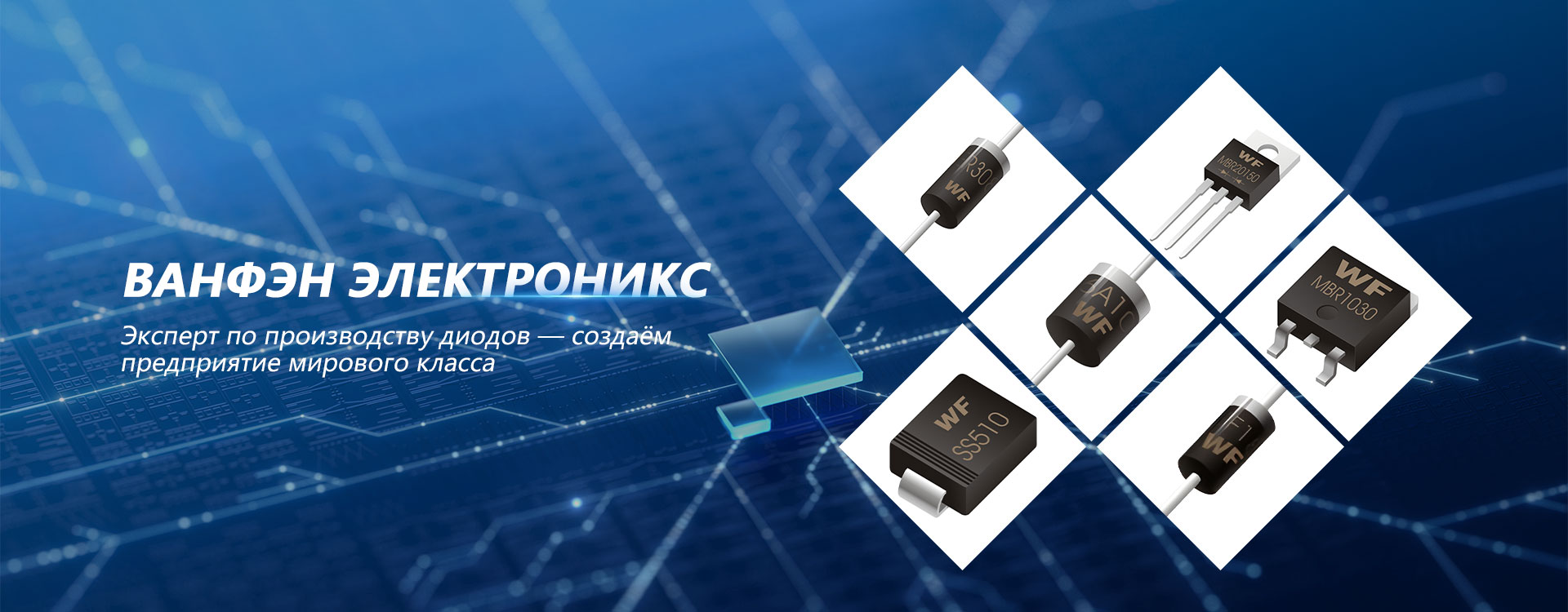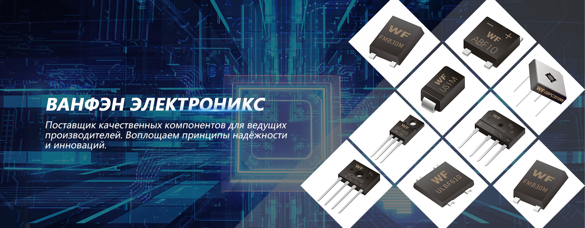 OOO Нантун Ванфэн Электронных Технологий— это современное предприятие по производству полупроводниковых приборов, интегрирующее научные исследования, производство и сбыт. Зарегистрирована в городе Жугао провинции Цзянсу, Китай, который известен как «край долголетия». Компания специализируется на ключевой компетенции в производстве силовых полупроводниковых приборов — разработке технологических процессов. Основная продукция включает широкий ряд полупроводниковых устройств, таких как выпрямительные диоды, диоды быстрого восстановления, высокоэффективные диоды, диоды Шоттки, высоковольтные кремниевые столбы, диодные мосты, импульсные диоды, стабилитроны, TVS-диоды, MOSFET, тиристоры, полевые транзисторы, ESD-защитные устройства, триггерные диоды, биполярные транзисторы и другие.
